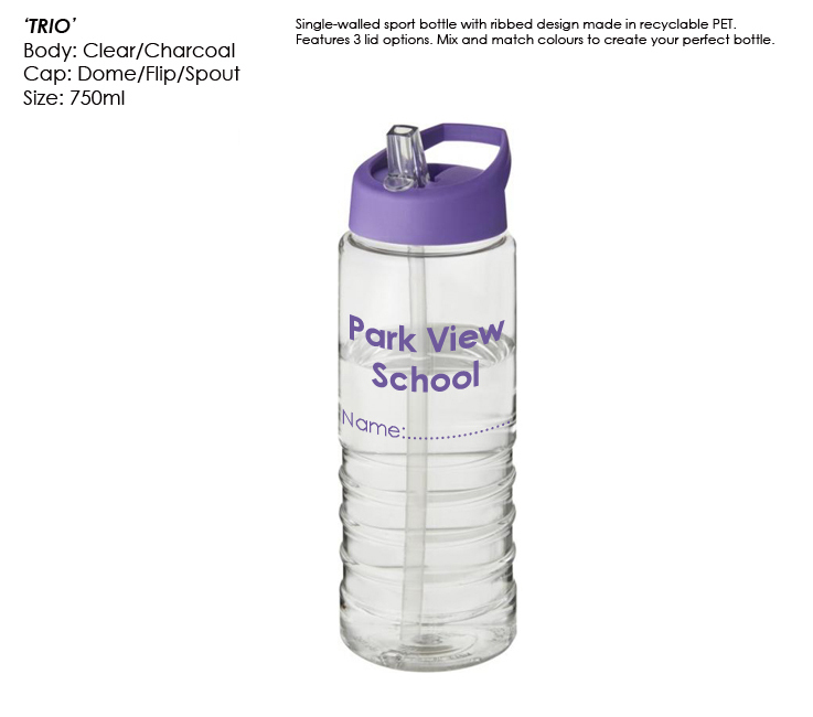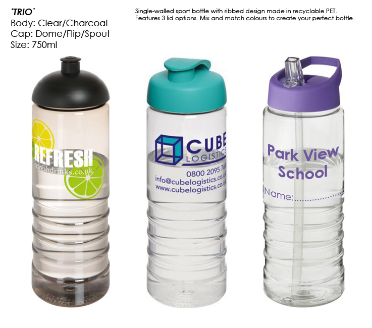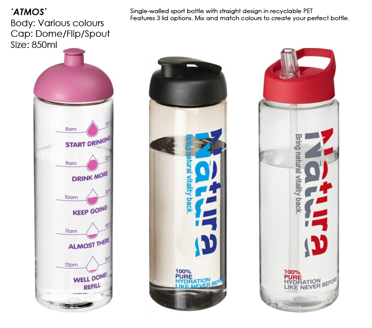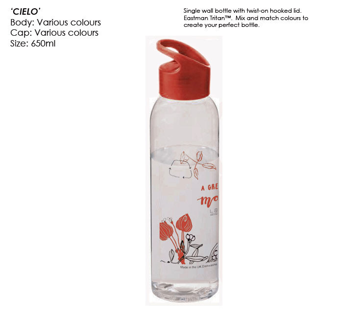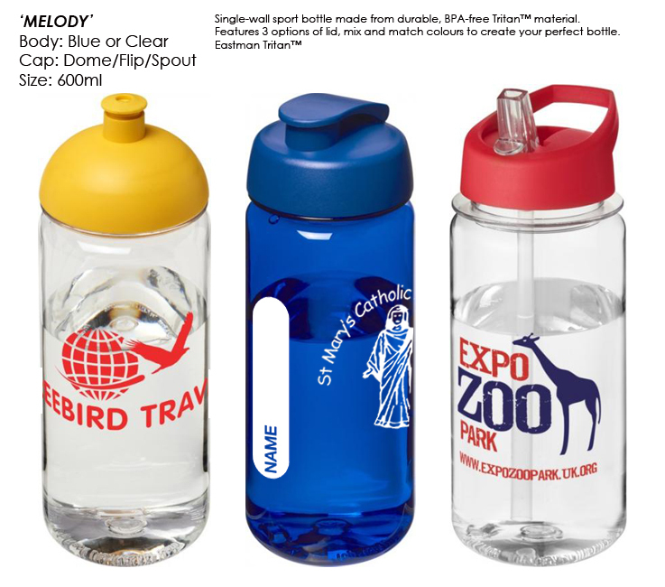 We have access to bottles of many materials, steel or aluminium, crystal clear PET or dishwasher capable TRITAN.