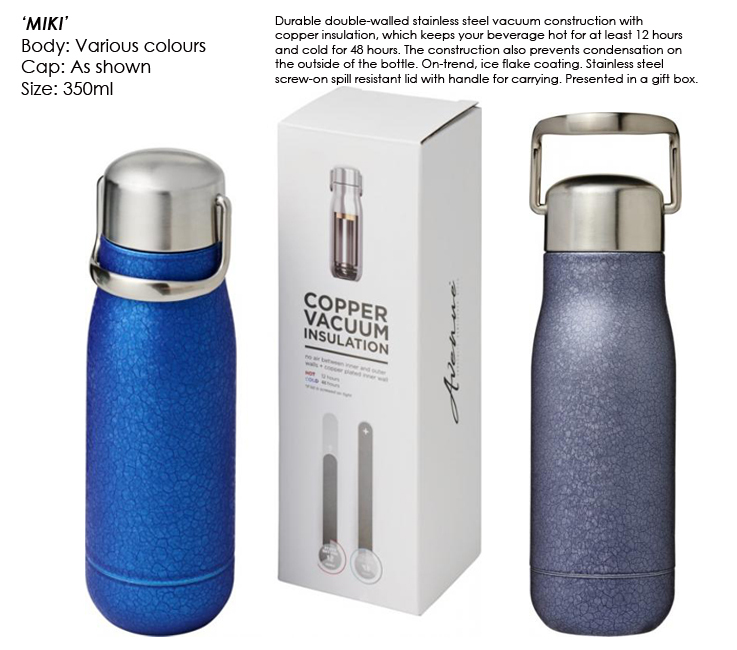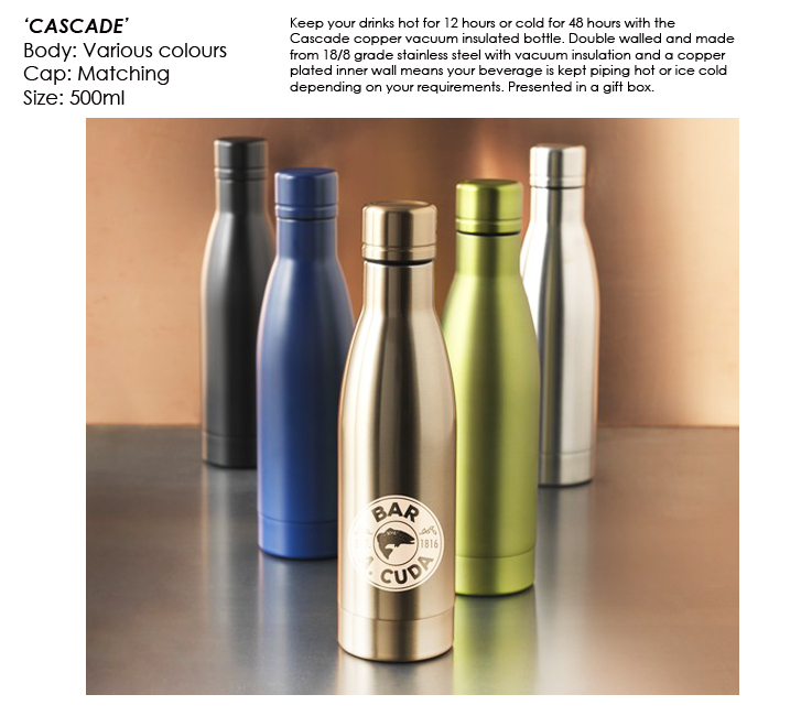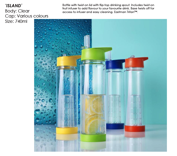 Optional extras including fruit infusers, customised lanyards and distinctive cap options.