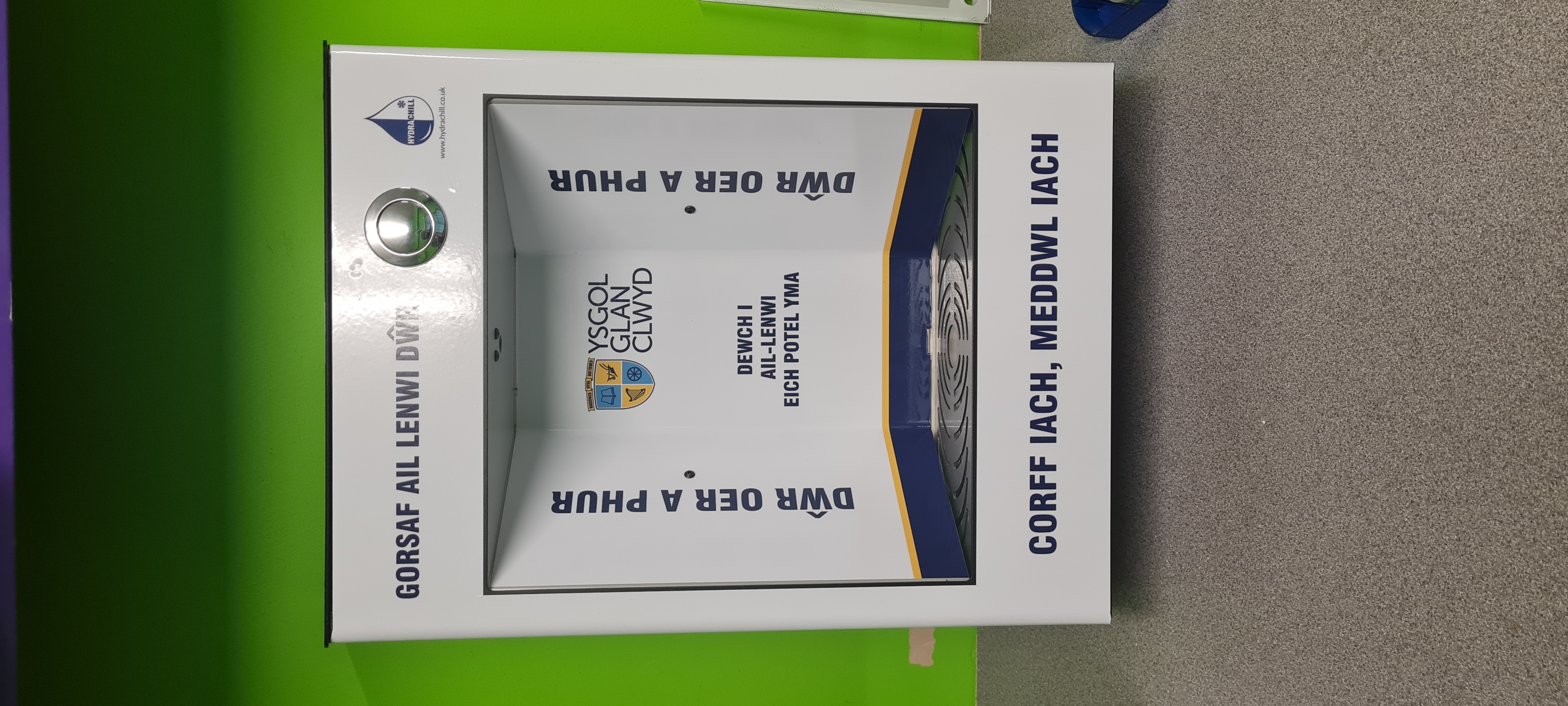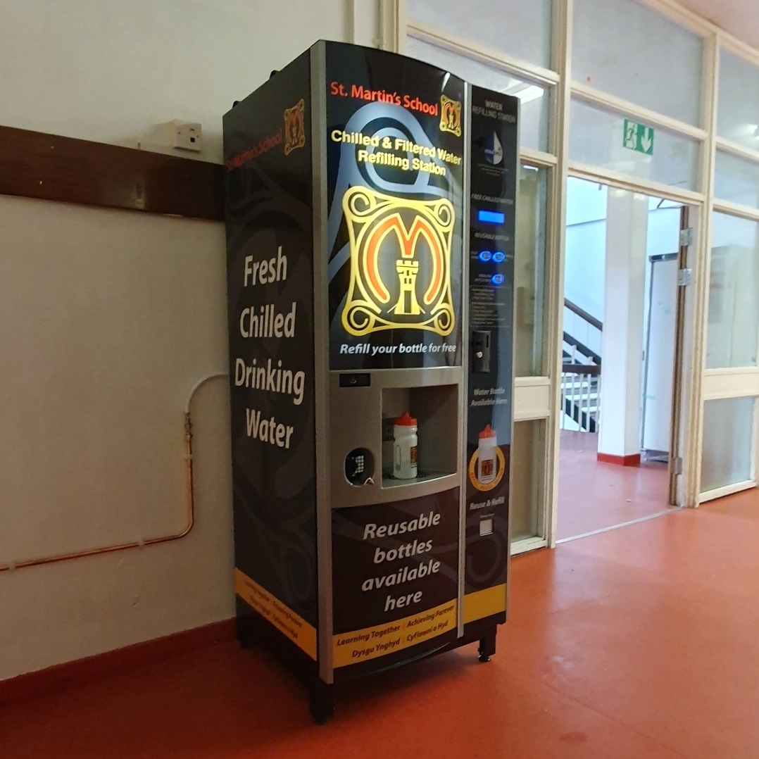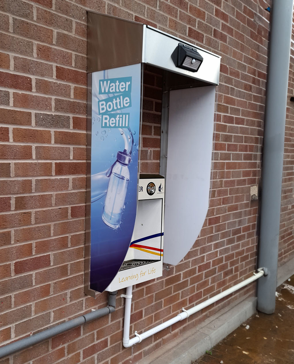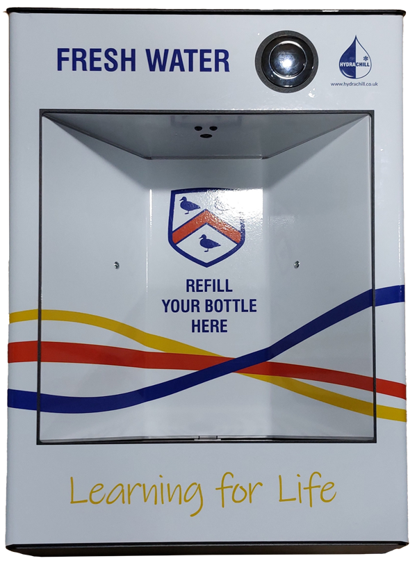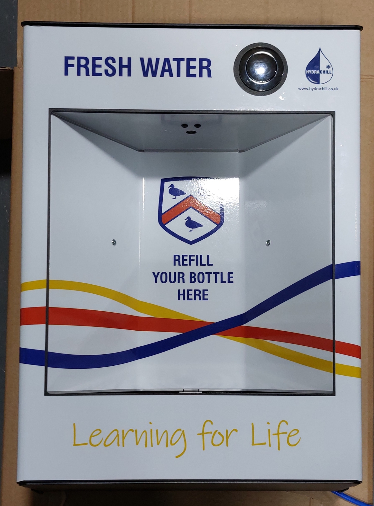 Hydrachill has used its expertise to develop versatile and durable water refilling options for schools including stunning custom branding for added student appeal. See below.